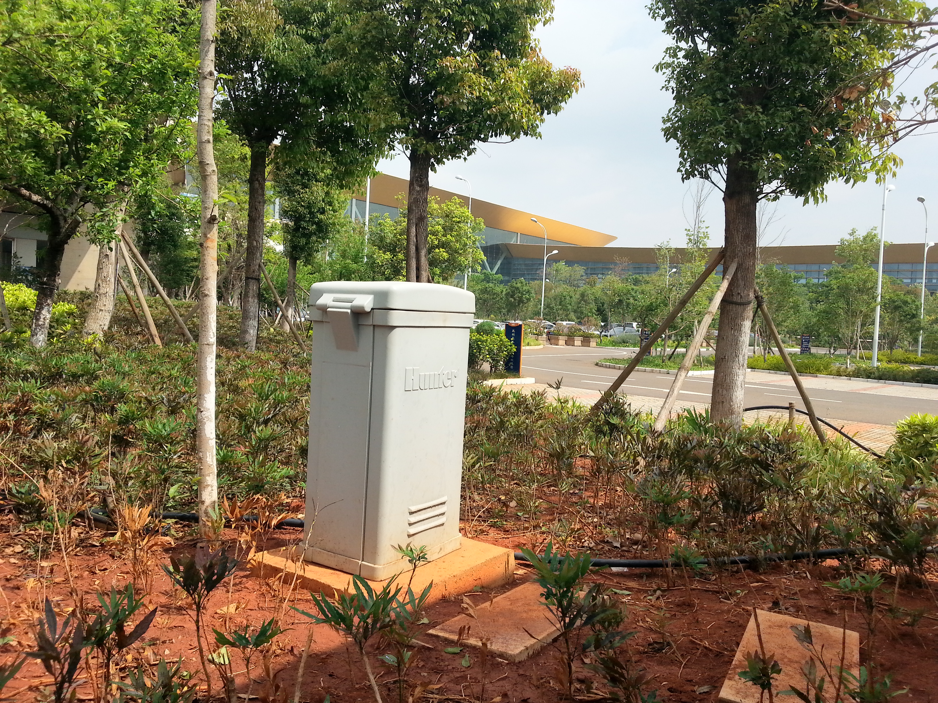 項(xiàng)目主要使用了HUNTER旋轉(zhuǎn)噴頭PGP-04、PGP-12噴頭體PROS-04、PROS-12配MP系列旋轉(zhuǎn)射線(xiàn)噴嘴、電磁閥PGV系列、控制系統(tǒng)采用了較先進(jìn)的ACC-99D-PP配備解碼器ICD-100、配套使用了RAIN-CLIK雨量傳器、ET-SYSTEM+ET-WIND氣候傳感器、SOIL-CLIK土壤濕度傳感器、FLOW-CLIK流量傳感器、并配備ROAM-XL-KIT遙控器一套。