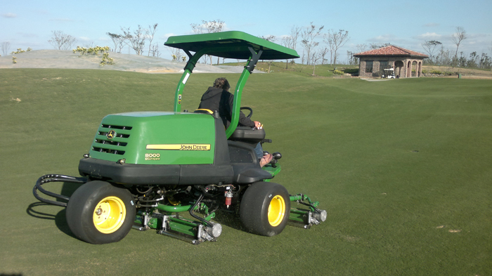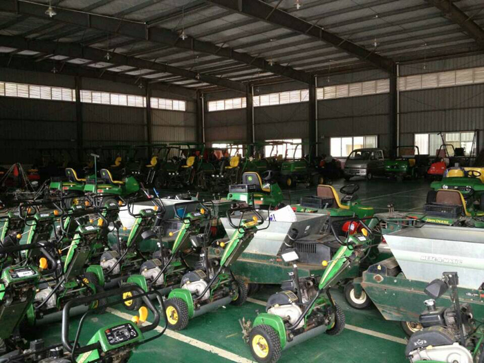 為打造頂級錦標(biāo)賽事球場,從設(shè)計建造至今,覽海國際高爾夫俱樂部配備了綠友提供的草坪養(yǎng)護設(shè)備,一應(yīng)俱全。高端上檔次的配置,為日后草坪的養(yǎng)護提供了堅強的保障,其中美國迪爾公司的8000E混合動力坐騎式五聯(lián)球道剪草機就成了其中的一大“功臣”。18英寸QA5刀組,兼?zhèn)湎冗M的油電混合技術(shù),起早摸黑,征服了連綿起伏的球道,贏得了俱樂部草坪總監(jiān)及其團隊的一致肯定。馳騁美巡,盼其再續(xù)輝煌征程。