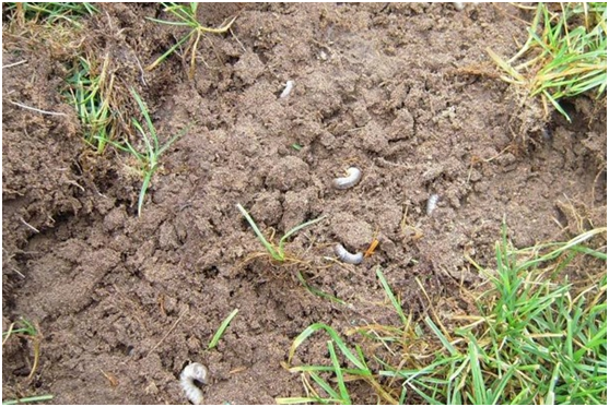 如果七月底正常澆水,已經(jīng)為草坪補充了足夠的水分,但仍然出現(xiàn)了這種情況,同時向上抓取枯黃草皮,很容易即可將其抓起,根系缺失,土壤表面可以發(fā)現(xiàn)白白的“小肉蟲子”,這個就是我們今天要聊的蠐螬。