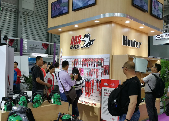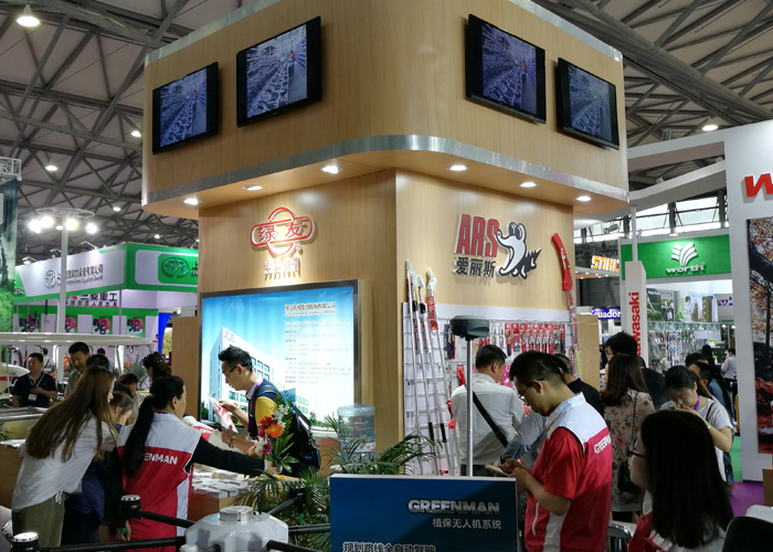 設(shè)備展示區(qū)更是吸引了眾多專業(yè)觀眾的眼光,綠友集團(tuán)展示了自主研發(fā)、生產(chǎn)以及代理的剪草機(jī)、打藥機(jī)、灌溉系統(tǒng)、冷霧系統(tǒng)、電動(dòng)車輛、粉碎機(jī)、無人機(jī)、園藝工具、植保用品等十多種產(chǎn)品。期間,綠友集團(tuán)展位上一直人潮涌動(dòng),自產(chǎn)設(shè)備引來諸多關(guān)注。有問粉碎機(jī)的,有了解大型零轉(zhuǎn)彎剪草機(jī)的,有被冷霧系統(tǒng)所吸引的,有圍觀無人機(jī)的,更有很多觀眾現(xiàn)場購買愛麗斯園藝工具。綠友工作人員不知疲倦地解答著各種各樣的問題,也收獲了大量訂單。
