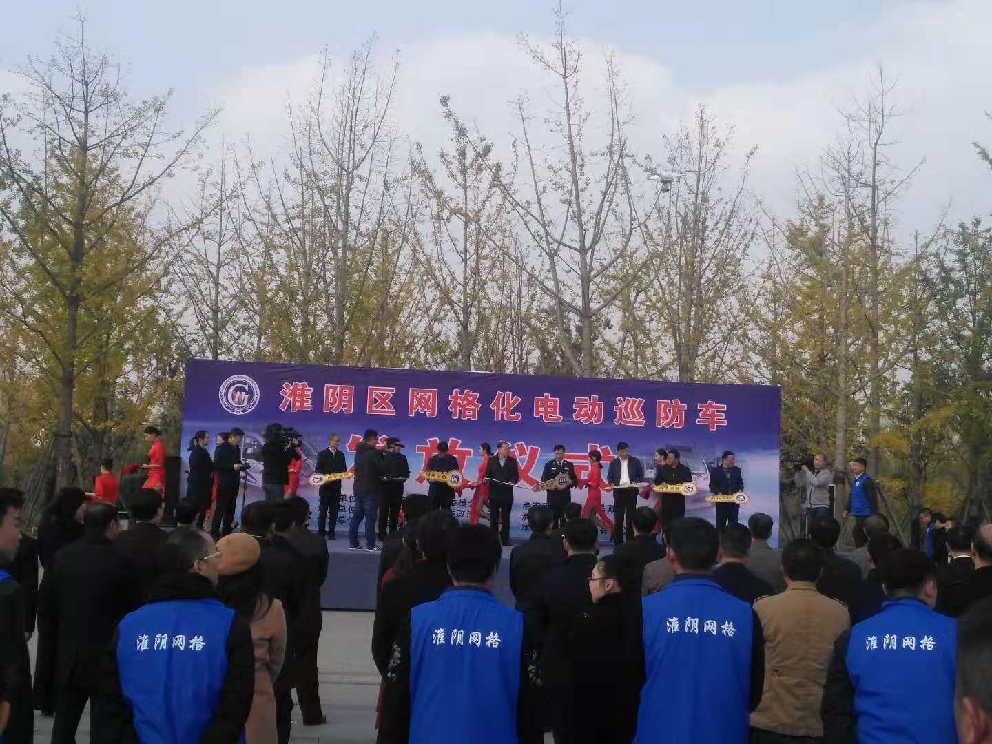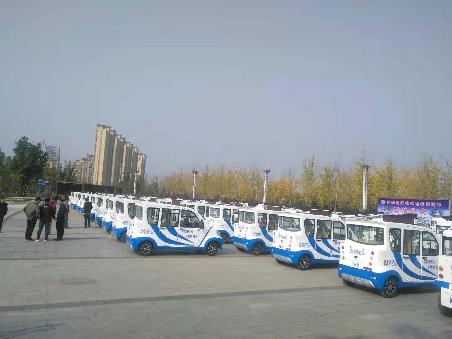 2018月11月13日,綠友集團向江蘇淮安市淮陰區鄉鎮交付25臺四座電動巡邏車。為突出建設平安安全社區的決心,舉行了隆重的網格化電動巡防車發放儀式。