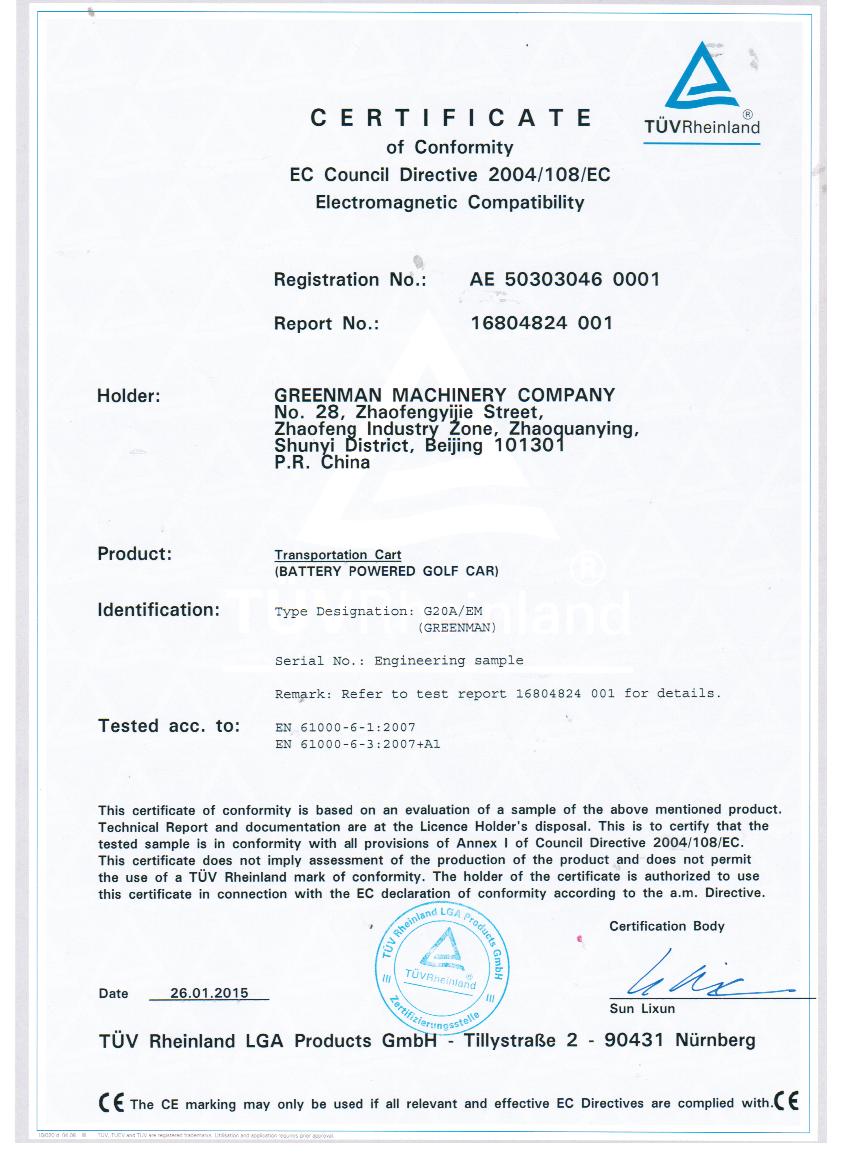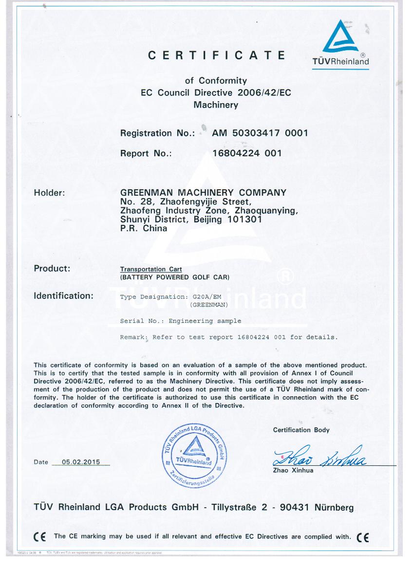 綠友集團(tuán)自主研發(fā)的GREENMAN兩座電瓶車(chē)golf car通過(guò)了CE認(rèn)證。
