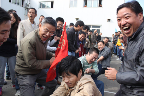 拔河比賽是最考驗(yàn)團(tuán)隊(duì)凝聚力的項(xiàng)目了。裁判員一聲令下,所有的選手勁往一處使,勒緊麻繩不放松,在強(qiáng)有力的“1、2、3”的口號下,每個參賽者使出九牛二虎之力,把繩子往自家起點(diǎn)線邊拉。只見繩索中心的紅線忽而左忽而右,參賽選手們絲毫不放松,腿彎了、差點(diǎn)就坐在地上了,大家又一股力量地往回拉。圍觀的同事們急得直跺腳,嘴上喊著“加油、加油”,手還一直往一邊“推”,好像自己也在拉著比賽繩一樣。在這場力量與意志的比拼中,拓寶二、營銷二部、草坪灌溉聯(lián)合組奪得了最后的勝利。