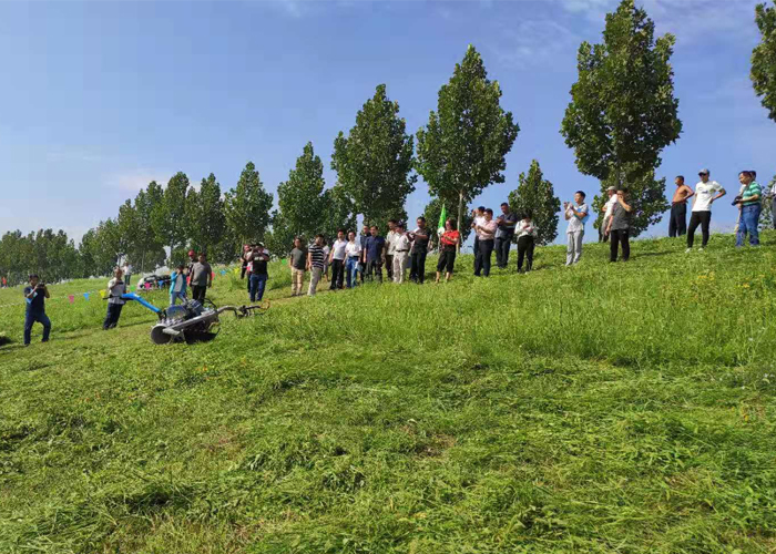 今年夏天,綠友集團(tuán)相關(guān)人員和德國Brielmaier公司兩名工程師一行來到山東東營市,在酷日和暴雨的黃河大堤上檢驗(yàn)這臺多功能剪草機(jī)的使用效果。