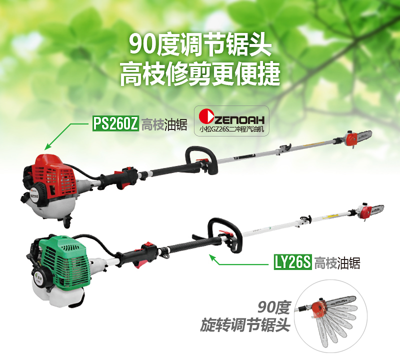 美神高枝油鋸,90度可旋轉刀頭,奧里根導板和鏈條;整機長度3米,適用于高空樹枝的修伐。