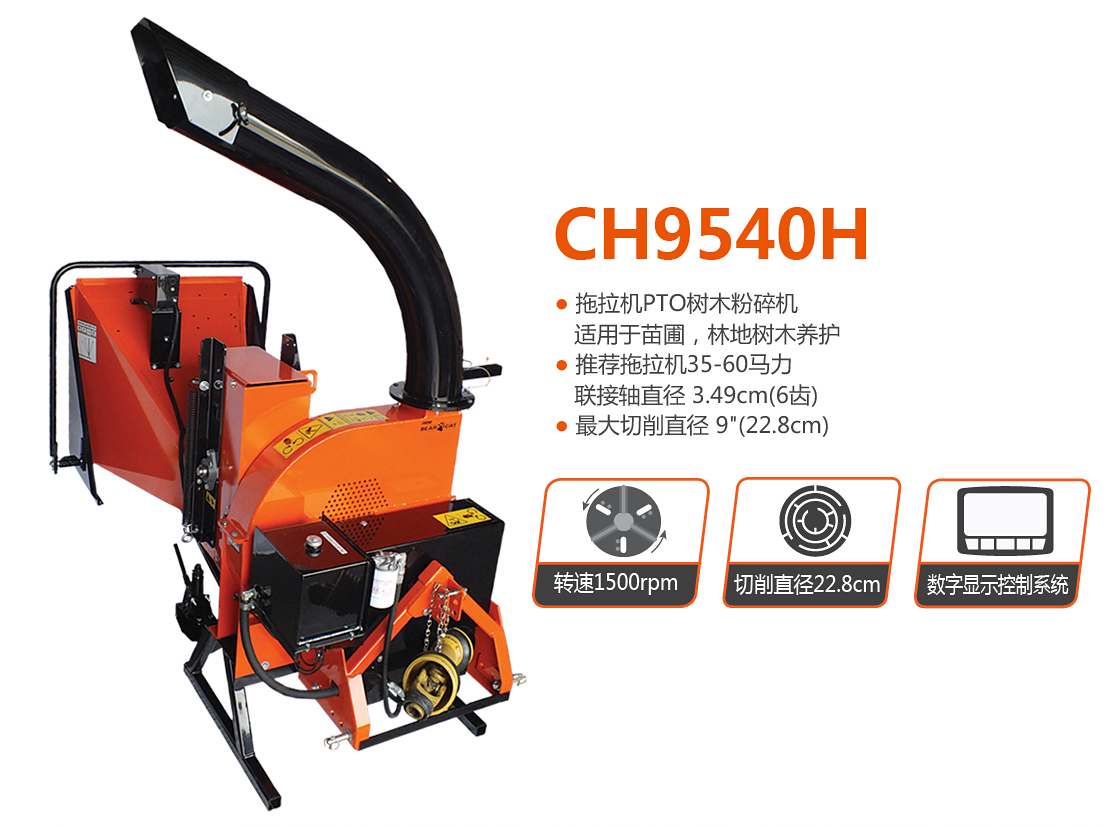 老熊(BEARCAT)品牌樹枝粉碎機,采用PTO驅動,適合苗圃等場所使用。推薦拖拉機35-60馬力,聯接軸直徑3.49cm(6齒);最大切削直徑9"(23cm)。