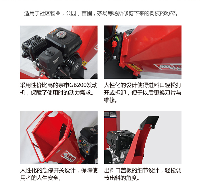 1.整機小巧靈活,適用于社區物業、小型公園、苗圃管理、茶場等綠植的碎枝作業。