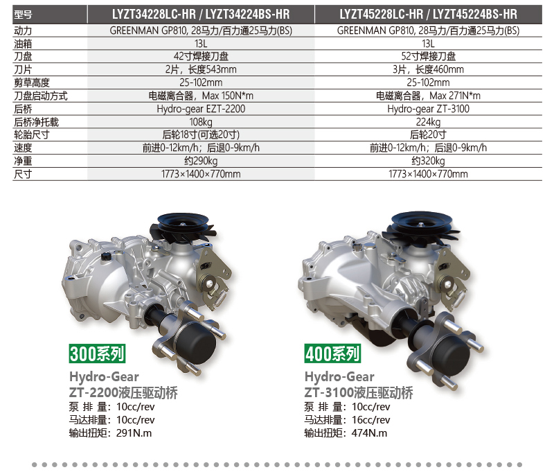· 選用美國Hydro-gear EZT 液壓驅(qū)動(dòng)系統(tǒng),