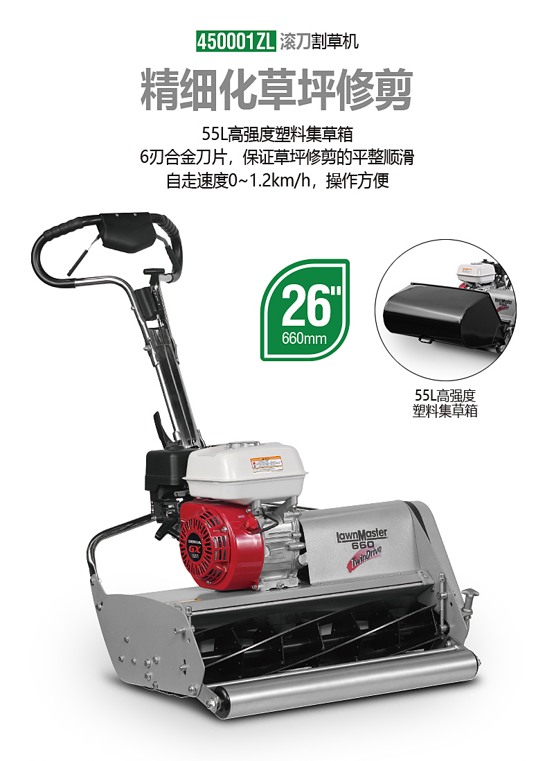滾刀草坪修剪機是一種精準草坪的修剪方式,具有修剪出來的草坪平整細膩等特點,適用地標、城市中心廣場草坪的修剪。